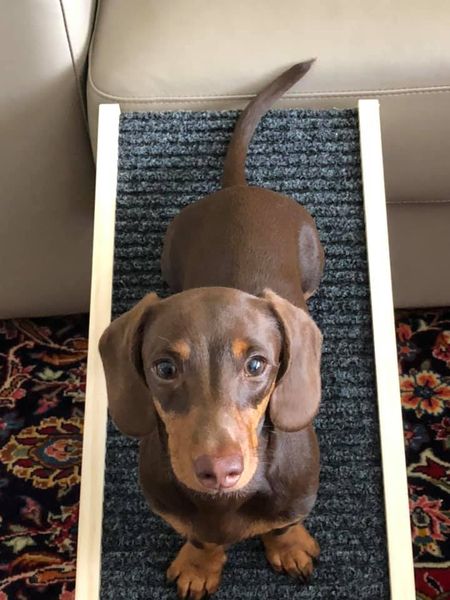 Our dachshund recently lost his eye sight, so we ordered a custom made ramp, which included side rails (for his safety), for our back patio door. Rambo no longer has to navigate the step and loves going up and down the ramp. Order was made very quickly. Thank you so much!