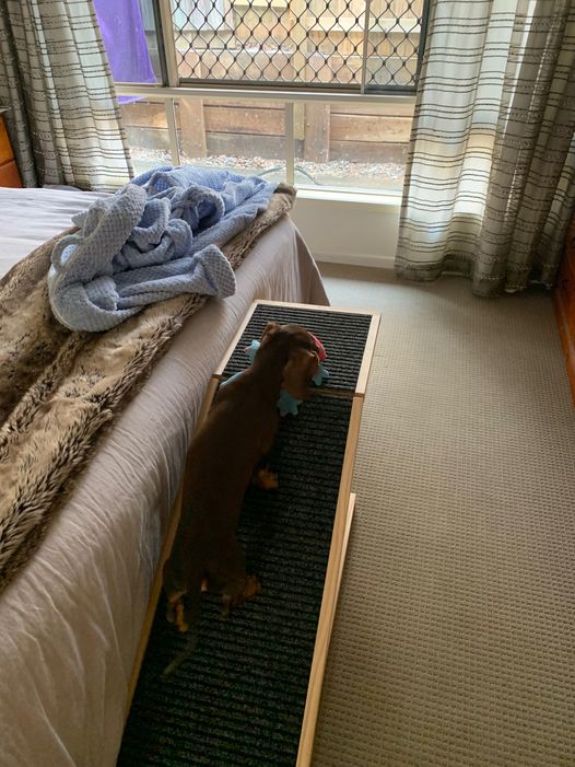 Easy ordering, fantastic communication. Ramp delivered without any dramas! Doug loved the treats, and loves his new ramp. It’s so well made and it has given me a little peace of mind knowing he’s not kamikaze-jumping off the lounge now! Thanks, can’t wait to order another one!
